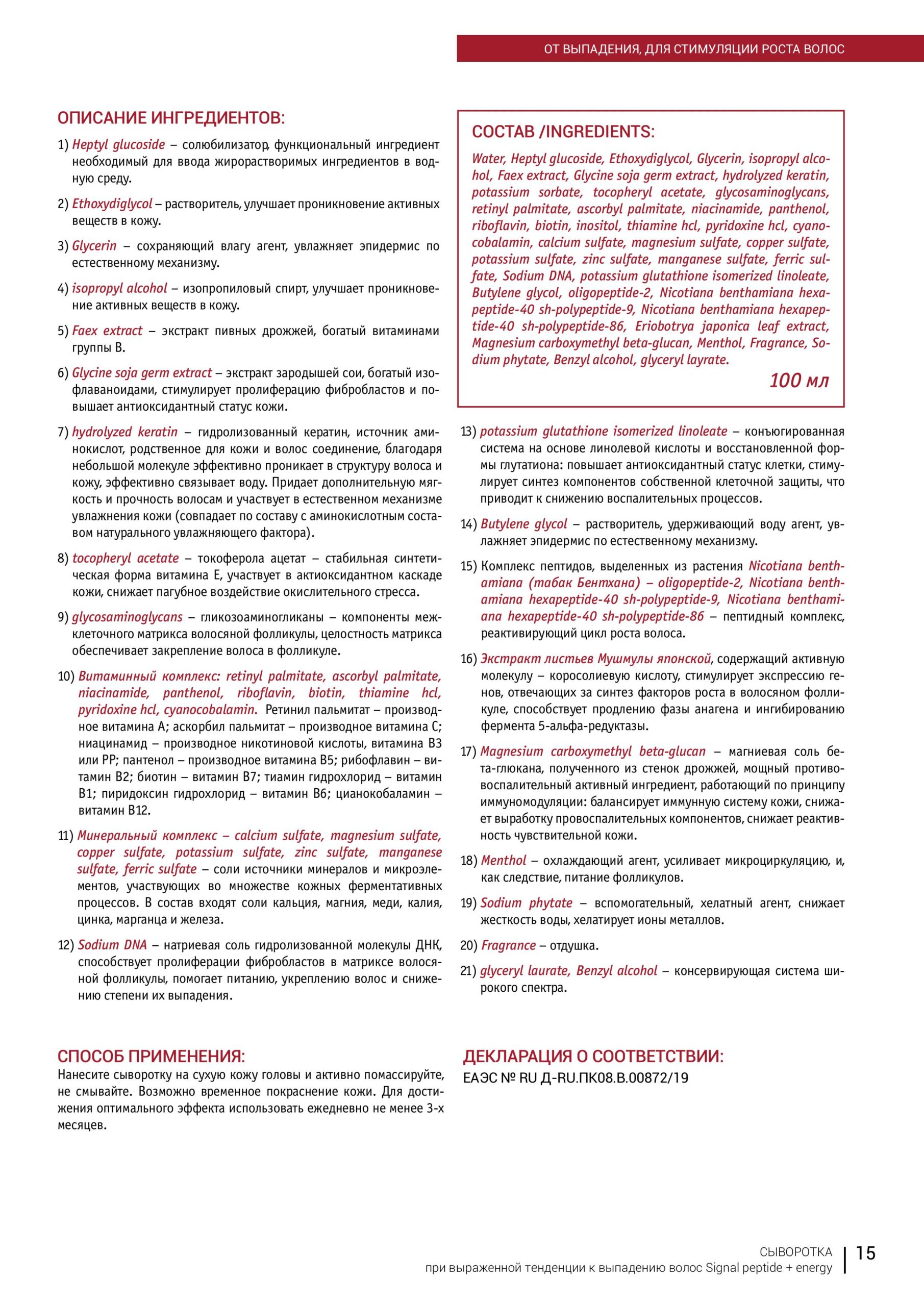 Сыворотка при выраженной тенденции к выпадению волос Signal peptide + energy, 100 мл.