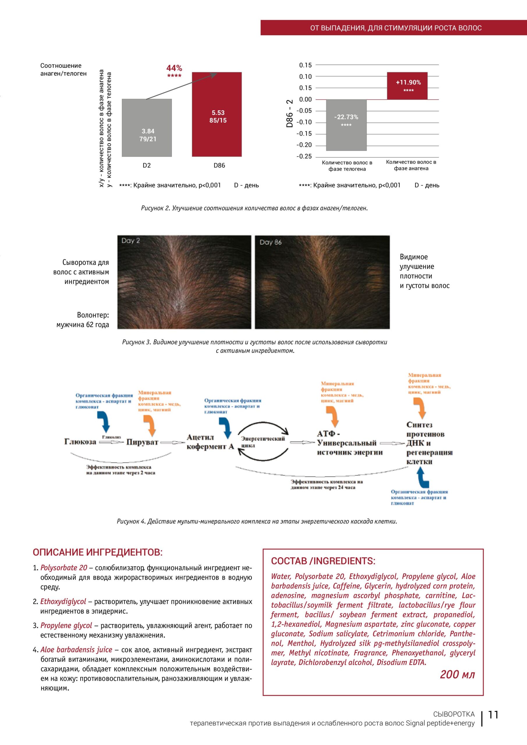 • Мульти-минеральный хроно-энергетический комплекс из аспартата магния+ глюконата цинка+ глюконата меди усиливает образование АТФ, протеинов и ДНК в волосяном фолликуле.